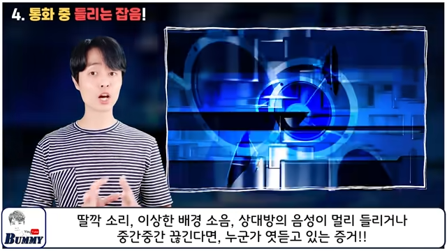 하지만 상대방과 내가 모두가 통신이 원활한 장소에서 전화를 하고 있는데도 불구하고 딸깍 소리 이상한 배겸 소음 상대방의 음성이 멀리 들리거나 중간중간 끊긴다면 누군가 엿듣고 있다는 증거입니다.