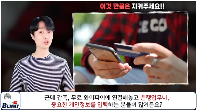 공공장소에서 제공하는 무료 와이파이로 절대 금융정보 거래를 하지 않아야 합니다. 카페나 지하철 같은 곳에서 유튜브 영상 시청이나 핸드폰 게임을 할 때는 크게 문제 되진 않습니다.