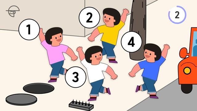 제각각 다른 방햐응로 향하는 네 사람이 있습니다. 네 명 중 가장 심하게 다칠 것 같은 사람을 골라보세요.