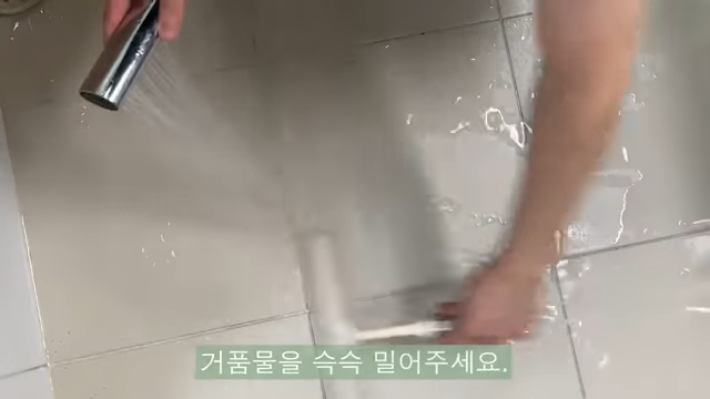 마지막으로 가장 중요한 물기제거 인데요. 물기제거를 진행 하지 않으면 다시 물때가 끼고 심지어 화장실이 습해져 없던 곰팡이까지 생길 수가 있습니다.