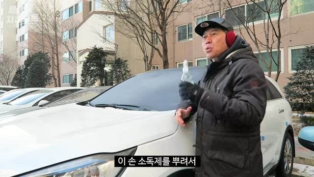 조금 의아할 수 있는데 차 안에서 바깥의 상황이 식별이 잘 안될 정도에서 성에가 생긴곳에 손 소독제를 뿌리면 꽁꽁 얼어 있던 성에가 쉽게 녹아내리게 됩니다.