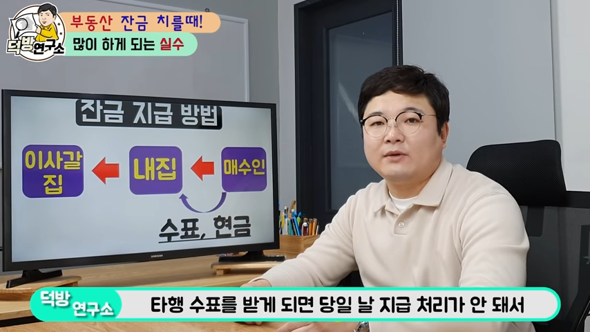 세금 때문에 현금이나 수표로 주는 경우가 있는데 타행수표를 받게 되면 당일 날 지급 처리가 안됩니다. 웬만하면 잔금 지급하실 땐 꼭 계좌이체로 지급하시는 것을 추천드립니다.