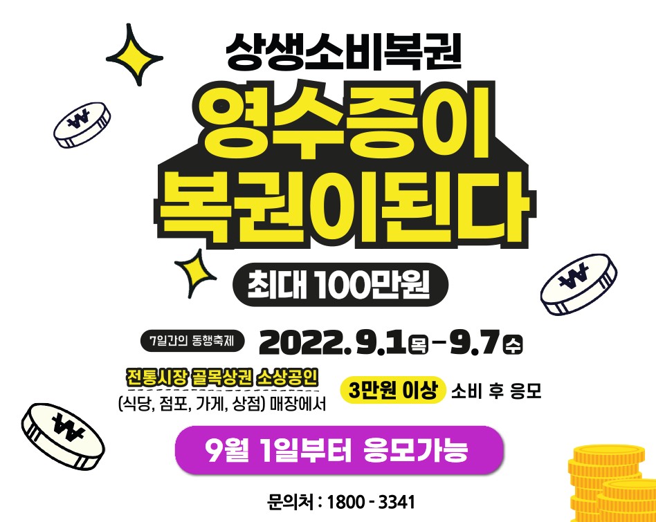 상생소비복권이란 중소벤처기업부와 소상공인 시장 진흥공단에서 민생안정을 위해 7일간의 동행 축제기간 동안 시행하는 영수증 추천 방식의 지원 제도입니다.