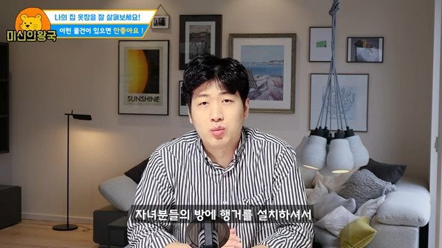 만약 옷장이 없는 경우엔 자녀분들의 방에 행거를 설치하셔서 따로 보관하는 것도 좋은 방법입니다.