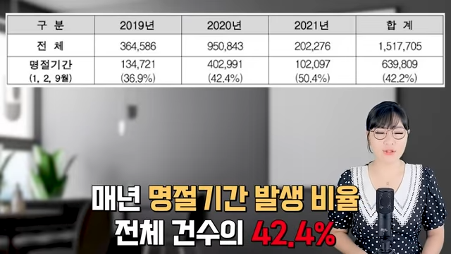 그런데 문제는 최근 3년간의 스미싱 추세를 살펴보면 매년 명절기간 발생 비율이 전체 건수의 42.4%에 달하며 특히 작년 2021년의 경우에는 전체 건수의 50%이상이 바로 명절기간 동안 발생했다고 합니다.